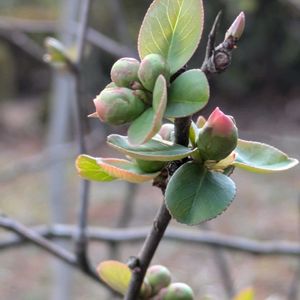 服部緑地都市緑化植物園で出会った蕾達 ①クサボケ別名シドミ、コボケ、ジナシ バラ科 ボケ属 ②ボケ バラ科 ボケ属の落葉低木 ③サンシュユ ミズキ科 ミズキ属