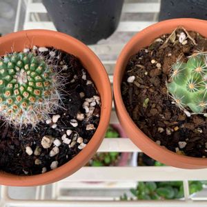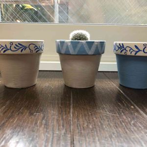 素焼きの鉢に少し色を付けてみました。(o^^o)💕乾いたら、少し窮屈そうなマミラニアさん達🌵を植え替えてあげよう😊💓♫