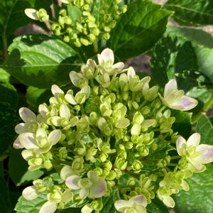 ラグランジア•ブライダルシャワー 去年の今頃、見切り品コーナーから救出して一年になります。(ほぼ根っこだけのボロボロの姿で300円で売られていました。) 元気にはなったけどまだ小さくて、数ヶ所だけ開花💕来年は沢山咲いて欲しいです✨ 青みがかった装飾花も綺麗ですが、小さくて見えにくいけど真花もとても可愛いです✨人気があるのが分かります💕