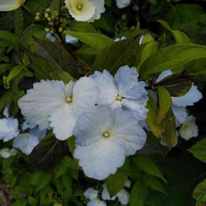冬アジサイ ブルーエレガンス 3月になると、お花の姿が現れます。 普通の紫陽花より、少し前の初夏に咲きます。 額咲きで、アクアブルーのお花です💠 この方は、葉を落とさず、冬を越えます。 とっても素敵な紫陽花です。