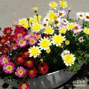 🌼マーガレット ソレミオ🌼 黄色いマーガレットが元気に咲いています。 ヒマワリ🌻の花に似てますね😊 🌸マーガレット バービー🌸 ローズとピンク色がとっても目を引く、可愛いマーガレット