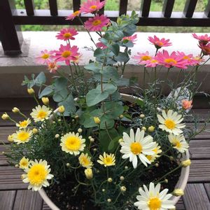 はじめて寄植えに挑戦🌼 一緒に植えかえただけだけど可愛い💕 #寄植え#マーガレット#ユーカリ