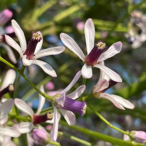 センダンの花(栴檀) 名の由来は 秋にできるクリーム色の大きな実が枝先に鈴なりになる様子から数珠がたくさんあるように見えるため、「千珠」(せんだま)と呼ばれ、それが変化してセンダンとなった。 実や樹皮は漢方として使用される他、駆虫剤や殺虫剤に使われる。 古名は楝(あふち)オウチ(楝)といい 「万葉集」「枕草子」「徒然草」にも登場する。 むかし栴檀の木を獄門のさらし首用に使ったという言い伝えもあるため、センダンを嫌う人もいるようです。😱