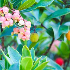 おはようございます😃 初めて見たイチゴノキです。 ツツジ科の花でドウダンツツジの花に似ています💕実もなっていました。実はヤマモモみたい😊食べられるようですが、味はどうなんでしょう🤔