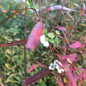 狂い咲き…その2 紅葉のユキヤナギに花が着きました。