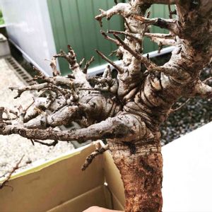 某オークションで一目惚れして入手したコミフォラ オルビクラリス🌱 鉢を色々合わせたけど、思ったよりも大きいので中々収まる鉢がなく苦戦しましたが、船串篤司さんの鉢に何とか収まりました✨ 後はもう少し状態が安定したら針金かけて形を整えたいと思います👌 多分A面となるのはこの写真の反対側🤗