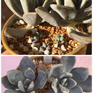 おはようございます✩°。⋆⸜(* ॑꒳ ॑* )⸝ 今朝は先日ほど寒くなくバケツの水も凍ってません( ̄^ ̄ゞ バケツの水が凍った日はルビネさんを筆頭に凍った多肉が多数…(´д⊂) 数日経ちましたが 凍った子達はやっぱりもうダメみたい(৹ᵒ̴̶̷᷄ωᵒ̴̶̷᷅৹) 今日のpicの子は不織布+ビニールで囲ってあったので平気組 立派な姿も健在です✨ 足元には葉挿しから大きくなった子も! 頑張ってます(๑و>o<)و{ファイト~!!〕