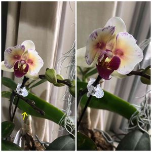 胡蝶蘭 ミラクル 2本の花茎の下から花芽?葉芽? しばらく様子を見ます。 まさにミ、ラ、ク、ル❣️