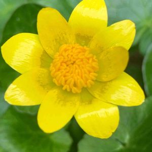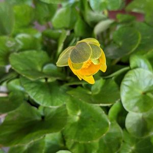 リュウキンカ。 2番花。曇りなので今日は閉じたまま。
