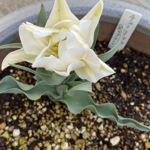✨ チューリップ🌷開花〜! ✨ 我が家のチューリッププランター、 ふたつ目が咲きました〜! 『ポップコーン』です 多弁で真っ白で…美しいです😍 みっつ目も咲き始めていますが… まだ全開じゃないし、なんだか勿体無いのでひとつずつ投稿しようと思います🤭 次回を楽しみにしていただけると幸いですぅ😊