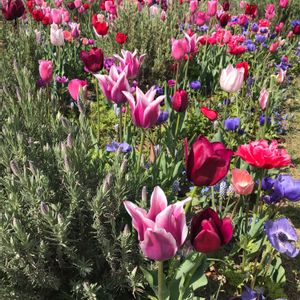 ここはジャクリーンガーデン💗💜 ピンクエリアはその名のとおり、 ピンクのグラデーションです! チューリップやアネモネのまわりには ムスカリや忘れな草がかわいく咲いてます。 そして、その次にラベンダーさんたちが今か今かと待ってます。 まるで、生きてる絵画です💗💜💙 4/8 新港中央広場(赤レンガ倉庫隣接)にて