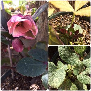 Christmas rose 🌸"HGCピンクフロスト"は開花始めた。 下から覗くように🤳蕾が2つあり、 ピンクからワインに濃淡が変化する。 💛"ステルニー ネオ・ゴールデンリーフ" 葉は緑から黄や散り班に変化色々、 花色はピンクか緑で咲くまで不明。 真ん中に出てきたのは花芽か? 💚"アーグチフォリウス・スターダスト" ギザギザ葉っぱに白い散り班が個性的 芽が出たが葉っぱになってしまった。 今年は咲かないかも😞