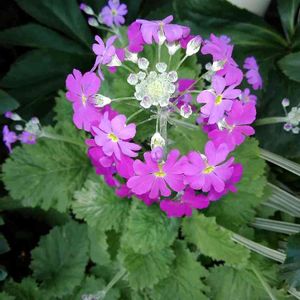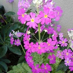 ひとつの茎にたくさんのピンクの花を咲かせているプリムラ・マラコイデス。 サクラソウ科サクラソウ属(プリムラ属)。 別名:ケショウザクラ(化粧桜)、オトメザクラ(乙女桜)。 サクラソウ属の植物は500~600種あり、観賞価値の高いものが多いとのこと。プリムラ・マラコイデスもサクラソウの仲間ということで、花びらの形がニホンサクラソウに似ていますね。 園芸店でも、1株だけでも見栄えがして、可愛らしいピンクの花束🎉のようにモリモリのお花、魅せられて、家の庭に…💓 家のは違う種類のようですが、株全体に白い粉がつくこともあるそうで、ケショウザクラ(化粧桜)という和名がつけられているそう。 この白い粉がある種類は、肌が弱い人がさわるとかぶれてしまうことがあり、義姉のお友達もかぶれたそう😆 作業をする時はゴム手袋などをはめて行った方がよいとのこと。 花言葉:「運命を開く」、「気取らない愛」、「素朴」。