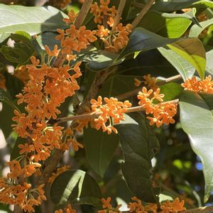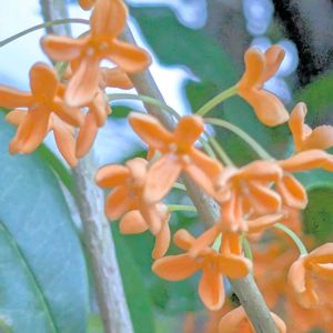 季節が一気に進むと同時にこの花たちも次々と咲き始めてます。 数か所で良い薫を辿って行くとそこには「金木犀(キンモクセイ)」が咲いてますね。 なんとも可愛らしい花単体はプロペラ形したオレンジ色の花🧡 言わずと知れた三大香木のひとつです😊 モクセイ科モクセイ属常緑高木 類似の白花の木は、銀木犀(ギンモクセイ) 花言葉「謙虚」「気高い人「真実」「初恋」「陶酔」