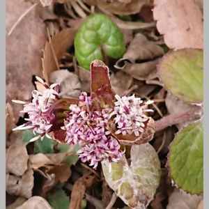 モンチッチさんの投稿を見てそんな時期になっていたと気付かされ行ってきました。 葉がフキに似ていて芳香があるところからニオイカントウ(匂款冬) 紅紫色の花は肝臓の機能を向上させる薬効があるそう。 昨年香りを嗅ぐことを忘れて😢 初めて甘い桜餅の香りを体感してきました🎶❣️