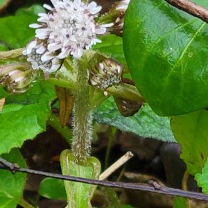 🌿ニオイカントウ🌿匂款冬 別名ウインターヘリオトロープ カントウはフキのこと。 フキによく似ていて、花は桜餅のような香りがするらしいです♪ 去年は香りを嗅げなかったので今年こそは!と思っていたのに、また忘れました😅💦 このあと花茎が伸びて花色はピンクに🌸 2024.2.14撮影