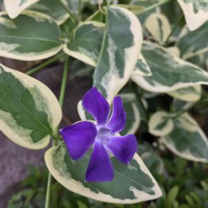 【ツルニチニチソウ】Vinca major キョウチクトウ科ツルニチニチソウ属 花期3-5月 グラウンドカバーとして使用可能。 …縁があると花付きが悪いらしいけどあった方が綺麗だとおもう。