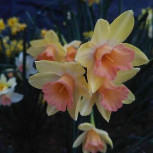 スイセン ブラッシングレディ こちらも香り水仙として販売されている人気品種です。 淡い黄色と濃いめのサーモンピンクの対比が美しいです。香り水仙の中では草丈も大きめで花付きも非常に良いです。