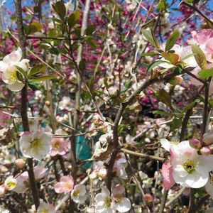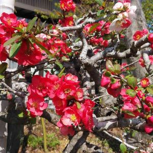ボケ 亡くなった祖父があちこち植えましたが、私は刺植物が嫌いなので手入れが面倒です。 品種はよく分かりませんがよく咲きます。 先日来たお客さんにこの品種は大事にしたほうが良いよ。といわれました。