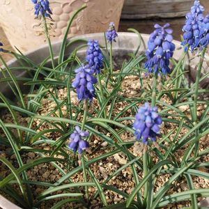 ムスカリ・アルメニアカム お客さまの家に植栽したあまりを畑に植え付け、更に余った分を鉢に植えました