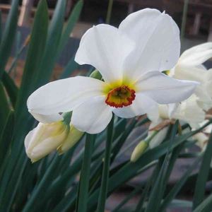 スイセン アクタエア 原種のポエティクスは地植えですと中々花を咲かせてくれませんが、園芸種のアクタエアは原種にそっくりな花をコンスタントに咲かせてくれます。
