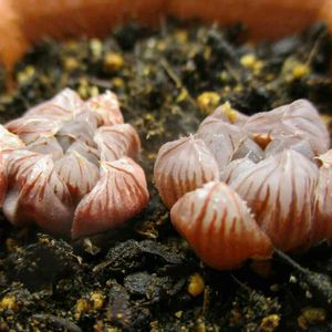 小さな器で、太陽好きの乙女心と一緒にいたせいで、すっかり日焼けしたオブ。 これから、いよいよ活動の時期。 褐色の葉肉をつぼみのように固くすぼめ、集約した透明窓が白く輝く姿は、そろそろ見納めです。
