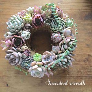 農ランドで開催された 『寄せコン』に昨日参加してきました! 私はエケベリアに個数制限のない エケフリーコースのリース作りをしてきました✨ 好きな子達ばっかり詰め込んだので・・・ やっぱりこんな淡い色味になるよね~(笑) 土台からのリース作りで、土台にかなり手こずりましたが、無事に出来ました💕 とっても楽しい時間でした✨