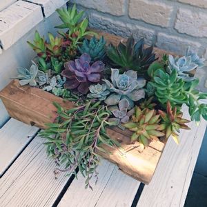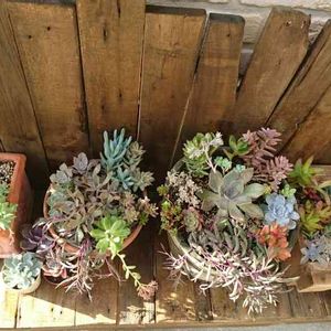 木製パレットの部材と 多肉植物のコラボ‼️