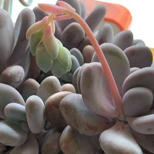 パキフィツム属プルーヘイズ。 水やりしたら、葉がプクプクしてきました✨ そして、2年目にしてやっと花芽が出てきましたっ! 嬉しいなっ(((o(*゚▽゚*)o)))