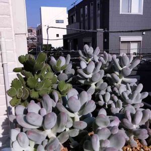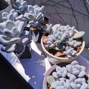 ミニサボの植え替え(鉢増し)をするため 寄植えメンバーを集めてます😆 多肉は下手くそなのに 懲りずにまた買ってしまった… 青白い肌と名前が素敵😳💕