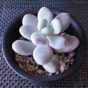 葉挿しから育てているパキペリア属 ブルーヘイズ プリップリで可愛い(๓´˘`๓)♡ まだ2cm足らずと小さいけど成長が楽しみ✿˘︶˘✿ ).。.:* ♬*゜ debdebのブルーヘイズを見て頂くと親が☆になり葉挿しから、育ってくれたのは、ただの一つと言う流れが、ご覧になれます。