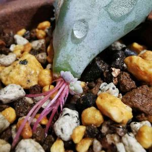 そして、徒長しまくってグダグダになった本体も再出発します。 パキベリアスパムザウルスと名付けました。恐竜の背骨の下にはかなり長い側根が生えています。この人たちは果たして生き残れるのでしょうか。