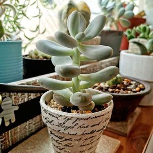 ブルーヘイズ パキベリア ブラクテオサムの交配種 売り場で折れて瀕死だったのにこんなに美しい姿を見てくれました(´˘`*)♡♥️ まるまるした多肉だいすき〜 最近は、高校生の頃読んでたジョジョ5部(ジョルノのやつね)がアニメ化され、楽しく観ています(❁´ω`❁)♡ 大人になってからの時間の流れって、本当に早いなぁ!