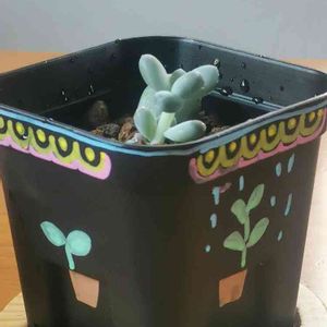 家族がお絵描きしてくれたリメ鉢に植え替えました。