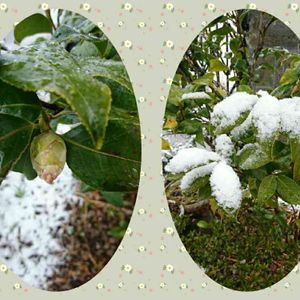 朝から湿った雪が降っていて、あっという間に銀世界に ❆⛄❆⛄❆ 庭の椿も雪化粧