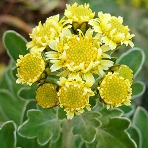 ベンケイギク?ではなく「イソギク」でした まだ開ききらない姿がブーケみたいで可愛い (∩ˊ꒳ˋ∩) 葉っぱの縁が白いのもおもしろ!ꉂ(ˊᗜˋ*)
