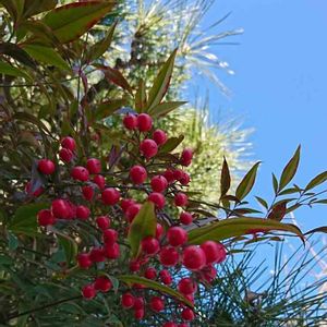 おはようございます☁️3℃ 自宅の南天🍂です☺️ 実がふたつ✌️だけ残ってました😅