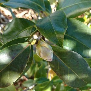 庭の椿の蕾が膨らんでいます なんか…ヘビ女か妖怪人間ベラみたい \=͟͟͞͞(꒪ᗜ꒪ ‧̣̥̇)/