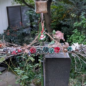 剪定した小枝とお散歩で拾った松ぼっくりでクリスマス🎄