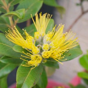 ハワイの花 オヒアレフア 3年目に小苗から取り寄せて、やっと花が咲いてくれました〜💛💛💛✨✨✨