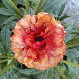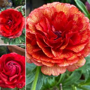 お友達にラナンキュラス ハデスをいただきました🌸初めは真紅なキレイな花でしたが今朝赤と黄のマーブルに🥰花変するんだーと感激👏二度楽しめるなんて最高です💐