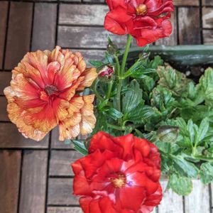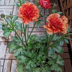 ラナンキュラス先輩3兄弟 開花一番乗りはハデスにほぼ確定🎯 もう一株もハデスっぽいです❤ 最後の一株はまだ蕾が小さくて分かりません。 週の後半から暑くなるみたいだけど、今シーズンに間に合うのかな💦
