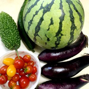 2025.8.17(日)大安 本日の収穫 ゴーヤ 1 きゅうり 1 ミニトマト 20 なす 4 西瓜 1 最高気温34℃最低気温26℃ 曇り時々晴れ☁️☀️ 朝地震 お盆休み最終日ですね❣️