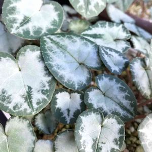 シクラメン コウムが開花を始めて2週間ほどで花数が増えてきました(=´∀`) 地味な葉っぱ ごちゃ混ぜ箱です(笑)