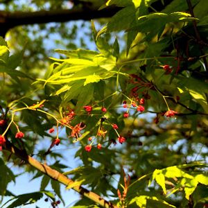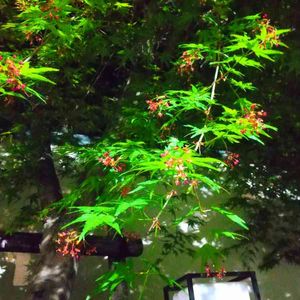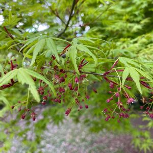 おはようございます☀️🌱 イロハモミジの下の方に花が咲いてます🍁 美しいです♡☆(´▽`)☆♡