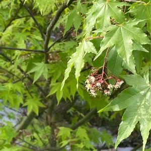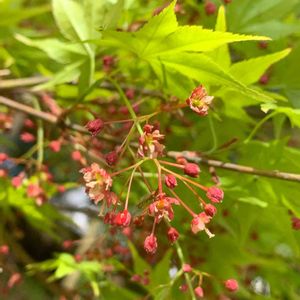イロハモミジの花を初めて見つけました! 今までも咲いていたのに気づかなかったのか、今年初めて咲いたのか!? 昨年新しく植えたイロハモミジ2本には花は付いていなさそうなので、我が家7年目のこの木がようやく環境に慣れて花を咲かせてくれたのかもと思ってます😊