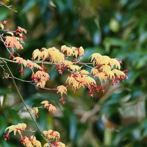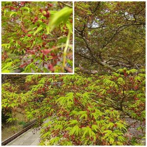 今日のお花🍁モミジ 庭のイロハモミジ、昨年のpicです。 春のお彼岸ころに、咲き始めました。 黄緑の若葉も、きれいでした。 🎶思い出せる すみずみまで 若葉の繁る頃に〜