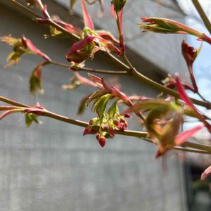 おはようございます😃 今日のお花…もみじ 昨年4月の我が家のもみじです 赤い蕾〜花がたくさんついていました。 今日も皆さまよい一日をお過ごしください🍀