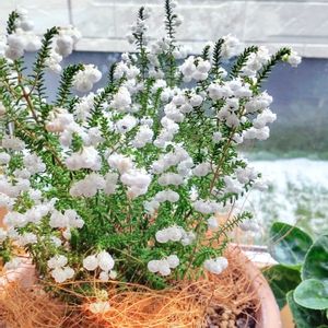 久しぶりの投稿です 昼間は陽があたり暖かいです 昨日 花屋さんでスズランエリカを購入 ピンクのエリカは知ってますが白は私が知らないだけかも? 出会ってないだけ 見た目で即買いしました