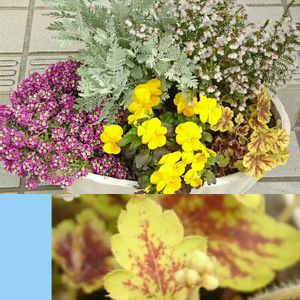 こんにちは👋😃☁ 1ヶ月前に、アリッサムさんがモリモリなので、他の子を入れた寄せ植え作りました😍 GSさんのヒューケラさんはお花が咲いているのですが、うちのは、まだまだと思っていたら可愛い蕾が😆⤴💓